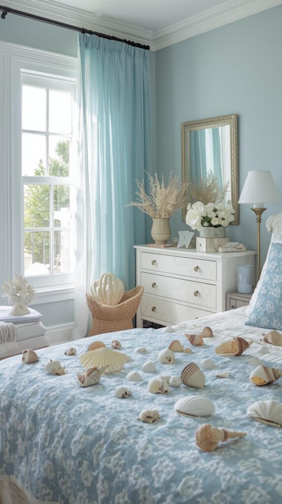 Take the beach home with blue-and-white decor, seashell accents and driftwood furniture. Sheer curtains and natural textures keep it feeling light and fresh.