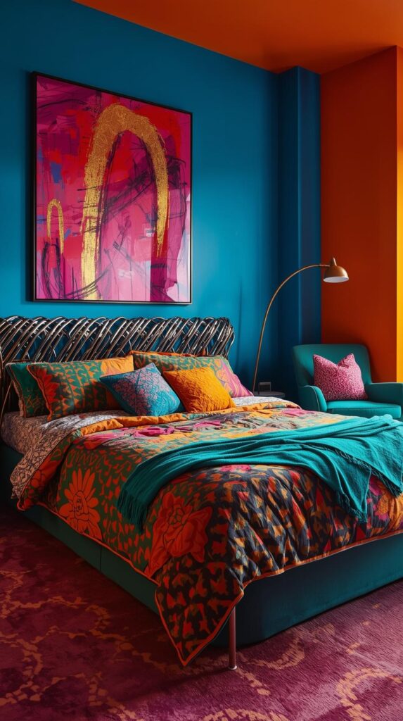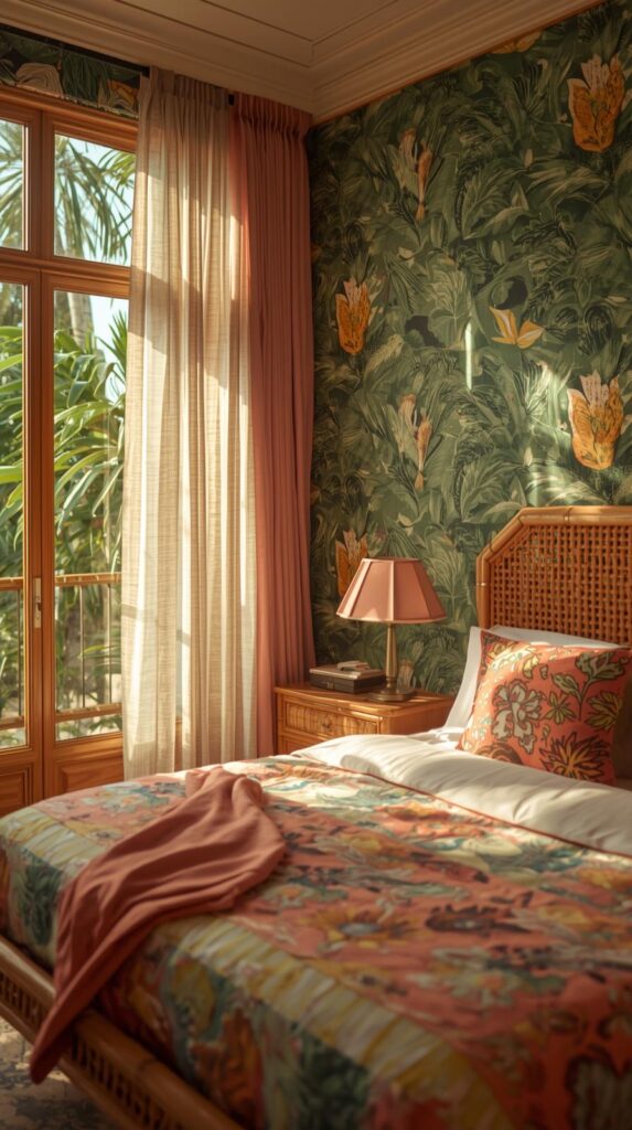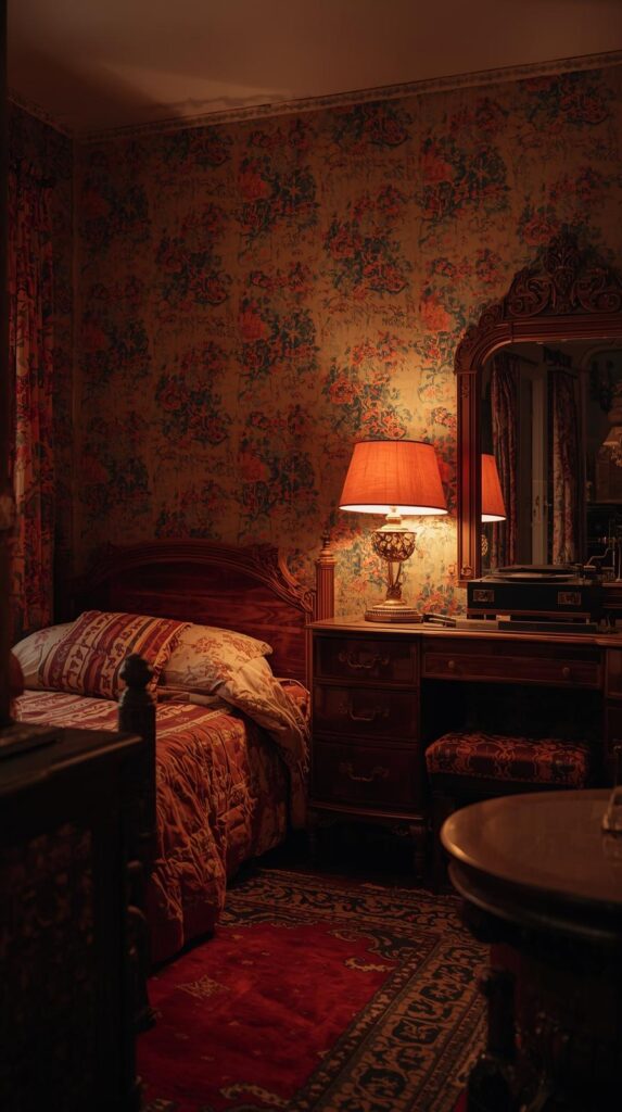 Step back in time with a retro bedroom. Go for patterned wallpapers, bold colors and antique furnishings. Top it with a record player or an old-timey lamp for flair.