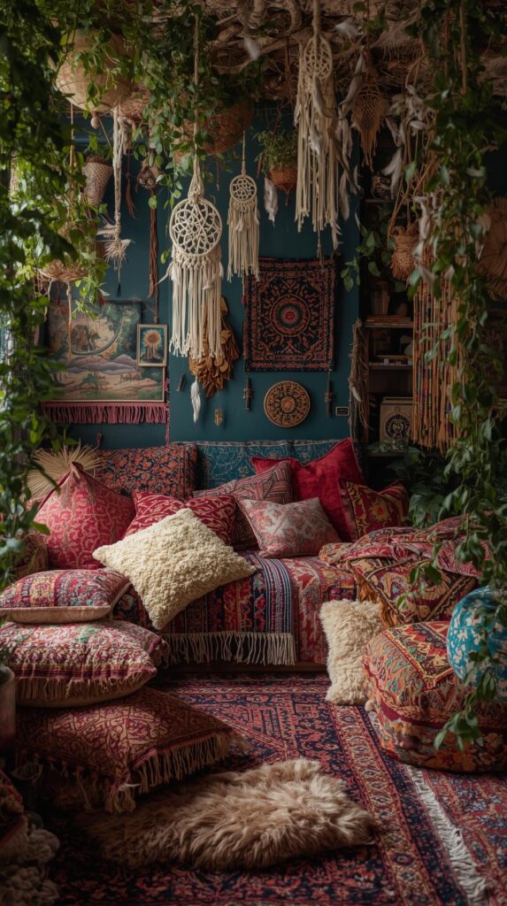 Boho A boho bedroom is vibrant and whimsical. Jazz it up with patterned rugs, hanging greenery, loads of doily-inspired dreamcatchers and myriad throw pillows. It really is all about the way to combine textures and bold colors.