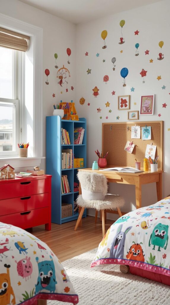 For children, veer toward the playful with punchy colors, cartoon-inspired bedding and storage-smart furniture. Throw in some wall stickers and a study desk to make it functional!