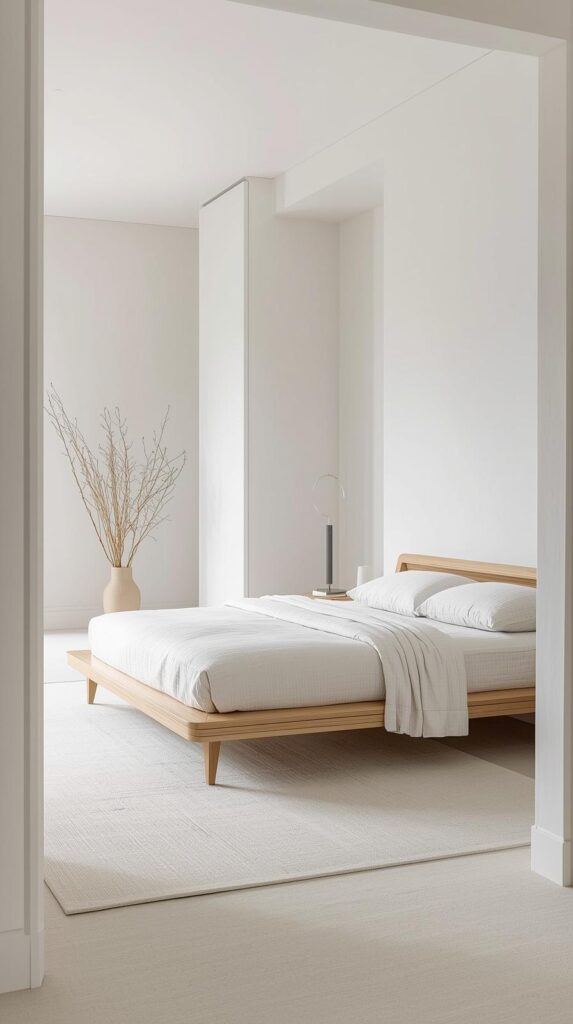 So how to design a modern minimalist bedroom that is simple and functional? Neutral tones, smooth lines and minimalism work together to establish a zen atmosphere. Throw in a low wooden bed, minimal side tables and some soft lighting for the desired vibe.